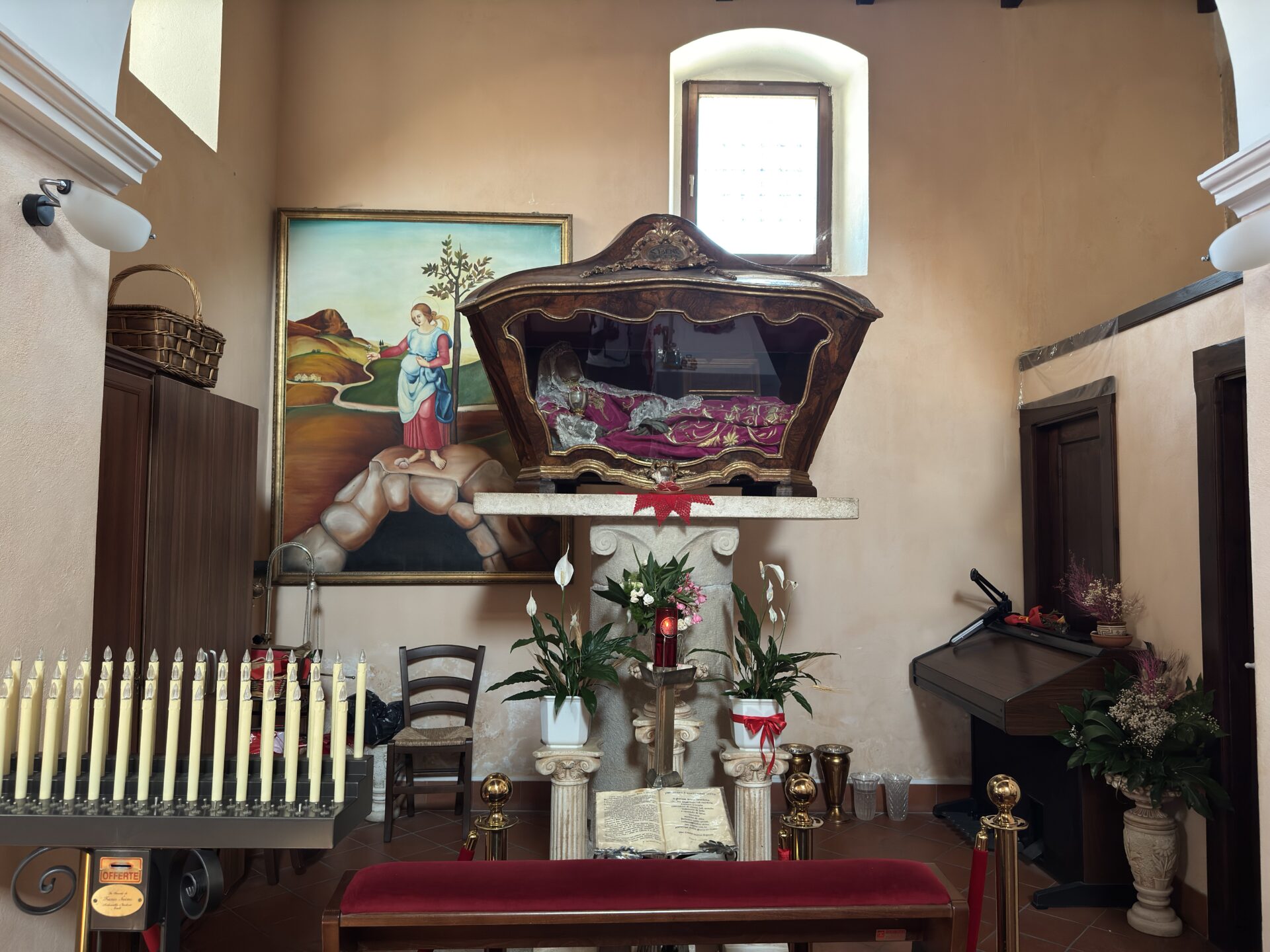 Nonostante queste vicissitudini, il paese conserva un forte senso identitario e una profonda devozione, in particolare per Santa Benedetta Martire, il cui corpo intero è conservato nella cappella situata nella piazza. È attorno a questi luoghi — la piazza, la cappella, i resti del borgo antico e il paesaggio che li abbraccia — che la comunità continua a riconoscersi, custodendo memoria, resilienza e radici condivise.